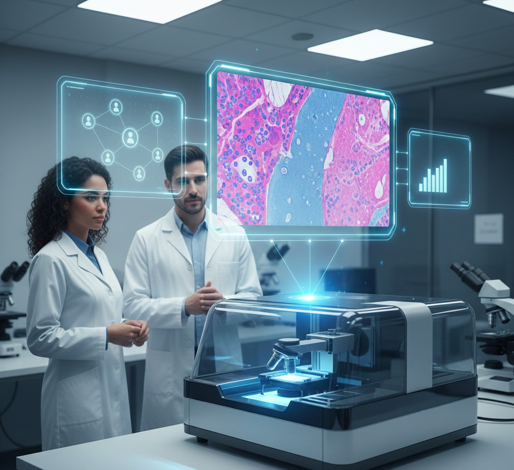 Descubra una nueva forma de diagnóstico patológico con nuestra digitalización de laminillas histológicas. Comparta imágenes de alta resolución, colabore con colegas y agilice su flujo de trabajo reduciendo tiempos de entrega.